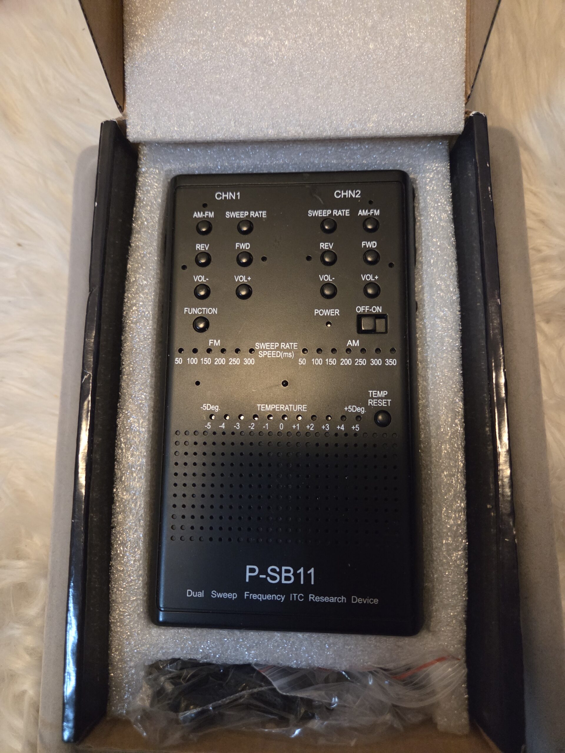 P-SB11-ANC är en avancerad spirit box framtagen för realtidskommunikation under paranormala undersökningar. Den använder dubbla svepskannrar som låter dig köra två separata scanningar samtidigt – AM + FM, två AM eller två FM – beroende på hur du vill fånga röster och anomalier.